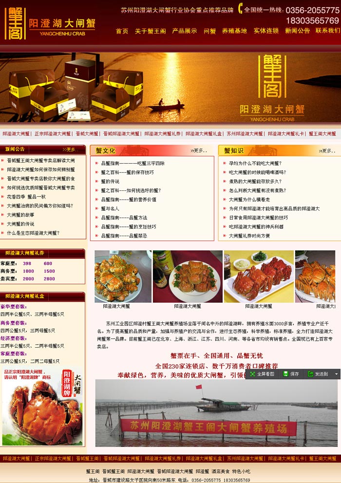 晉城陽澄湖大閘蟹-蟹王閣專賣店,提供正宗陽澄湖大閘蟹和大閘蟹禮券,我們應對您不同的需求為您訂制了各種價位的大閘蟹券和包裝精美的大閘蟹禮盒。咨詢熱線:18303565769 網址http://www.jcsdzx.com |